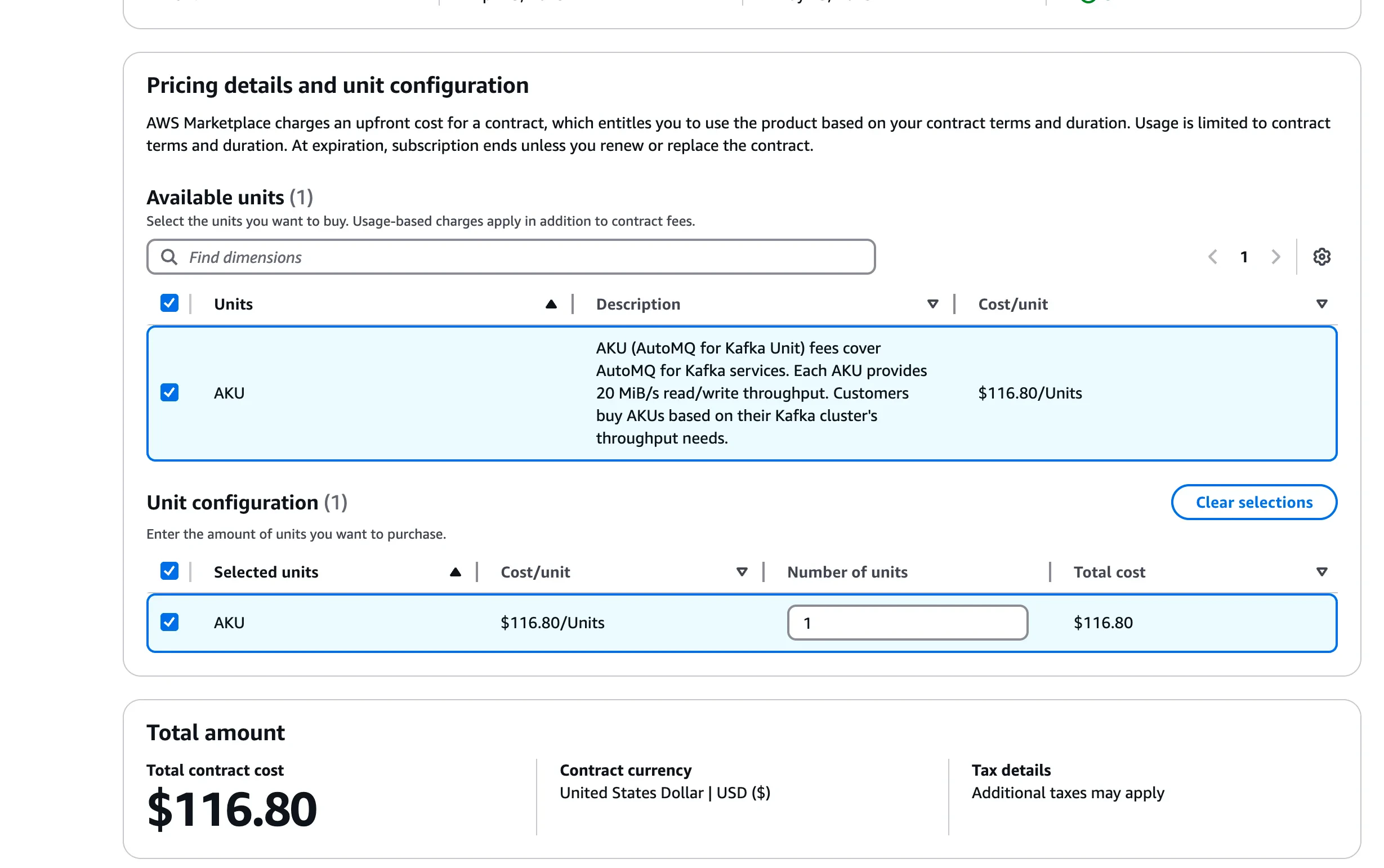 - AWS users can visit Marketplace, search for AutoMQ or Kafka, locate AutoMQ for Kafka (BYOC Monthly Subscription License), select the appropriate specification version and subscription period, then activate the subscription.