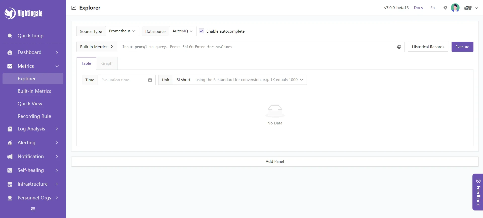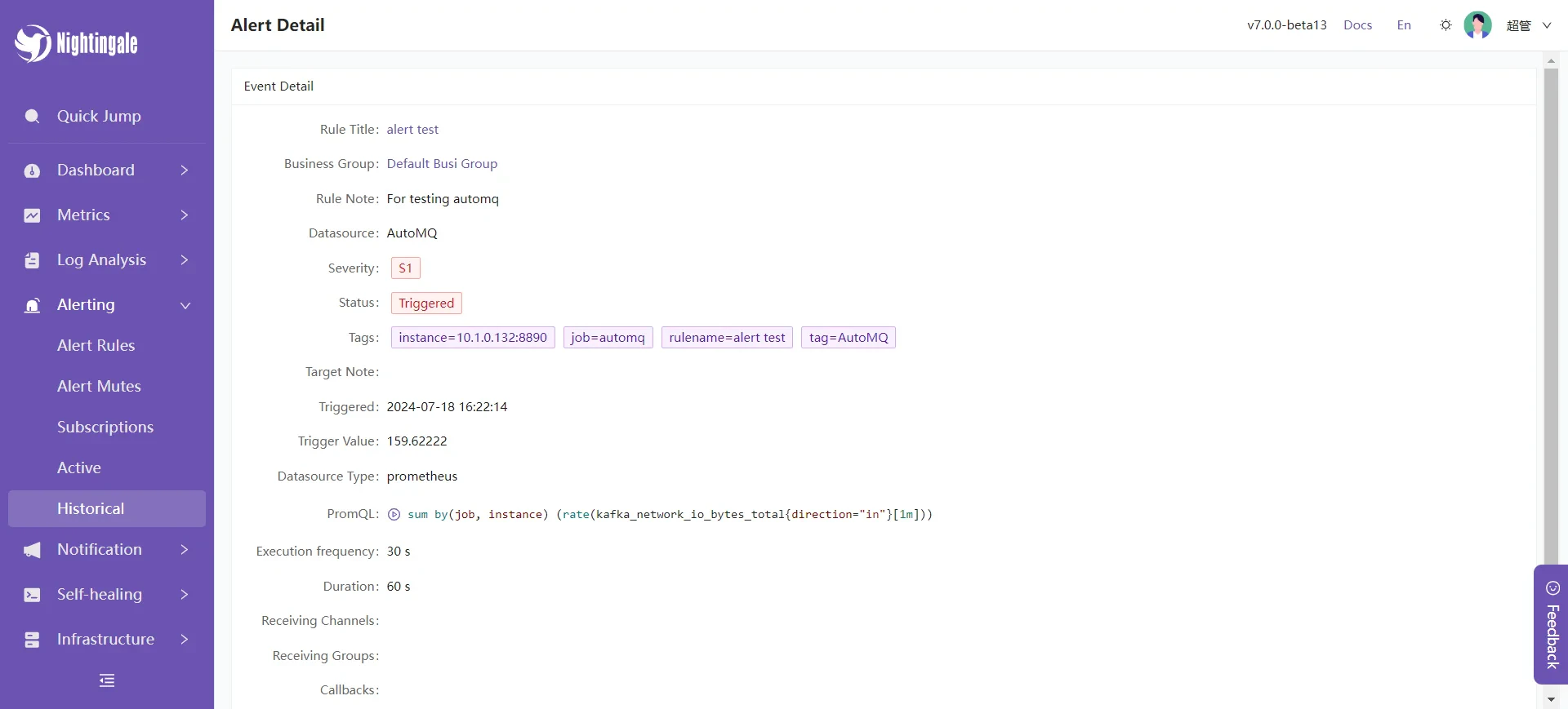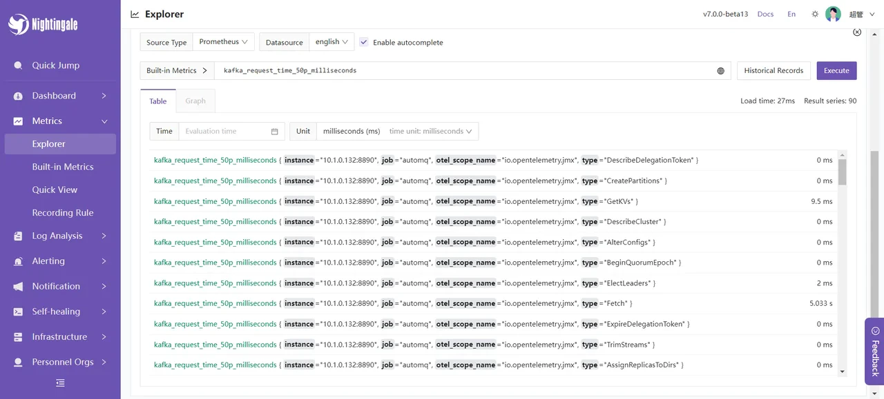 Next, we will introduce some of the features provided by Nightingale monitoring to help you better understand the available features integrated with AutoMQ.Instant Query