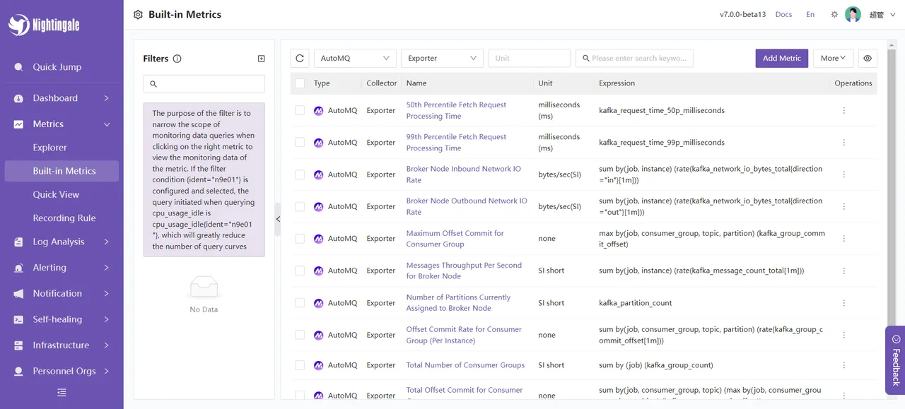 Monitoring your AutoMQ cluster helps you maintain stability and optimize performance. This guide shows how to integrate AutoMQ with the Nightingale monitoring system.Overview of Nightingale