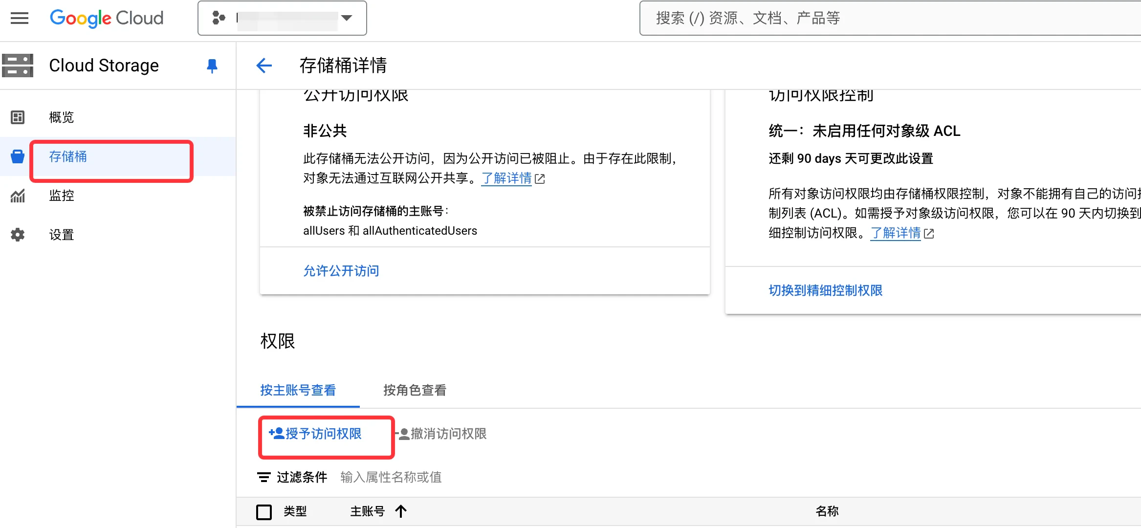 Google Cloud 上 GCS 提供了Web 界面以及简化的 policy 授权。控制台操作步骤