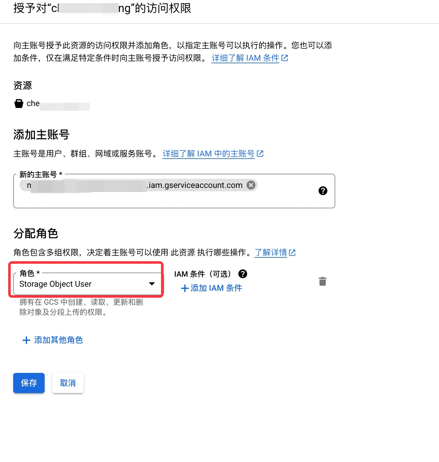- 绑定的角色: 选择Storage Object User 角色。