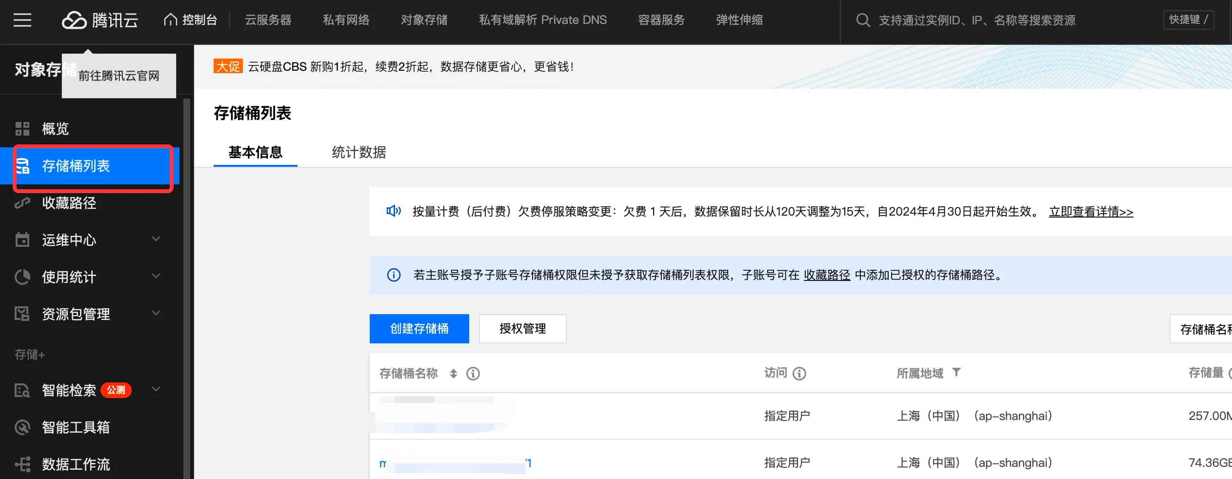 登录运维 Bucket 所属云账号,或者是拥有授权操作能力的子账号,前往 COS 控制台:- 前往 Bucket 列表页,找到目标 Bucket。 用户访问 COS 控制台,点击左侧导航栏 Bucket 列表 ,进入列表页。搜索找到当前环境配置的运维 Bucket,点击详情。