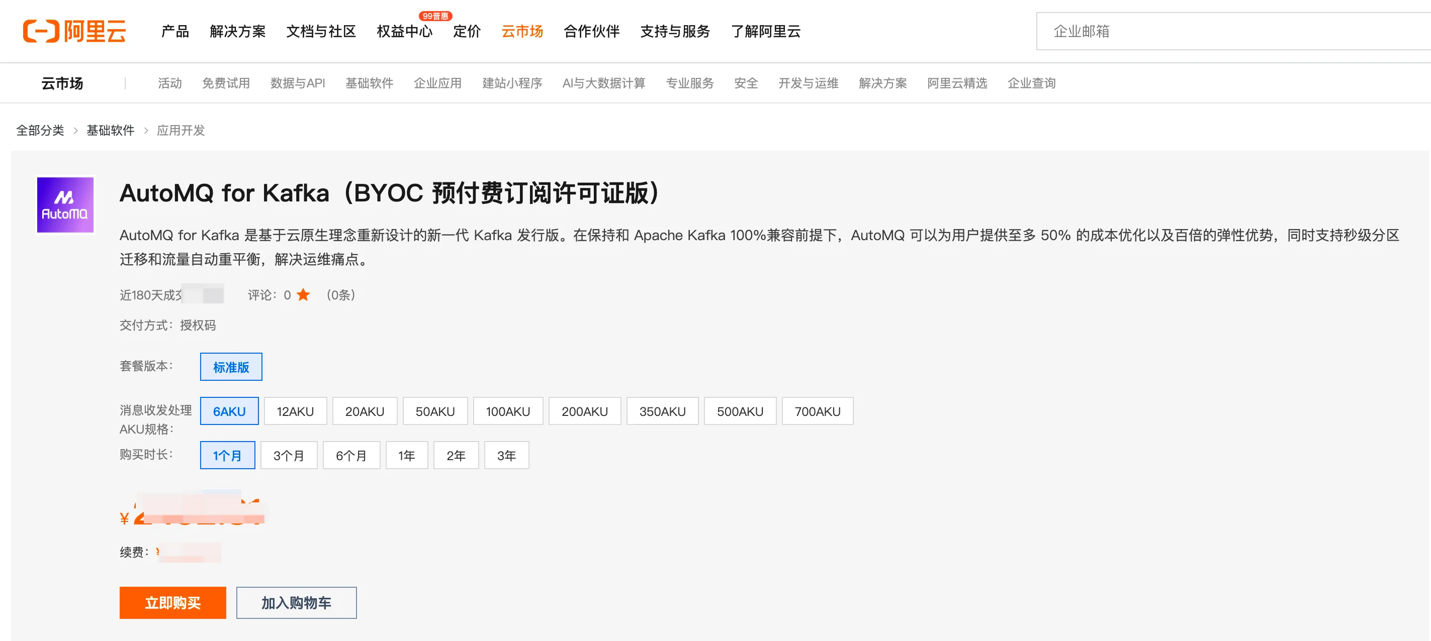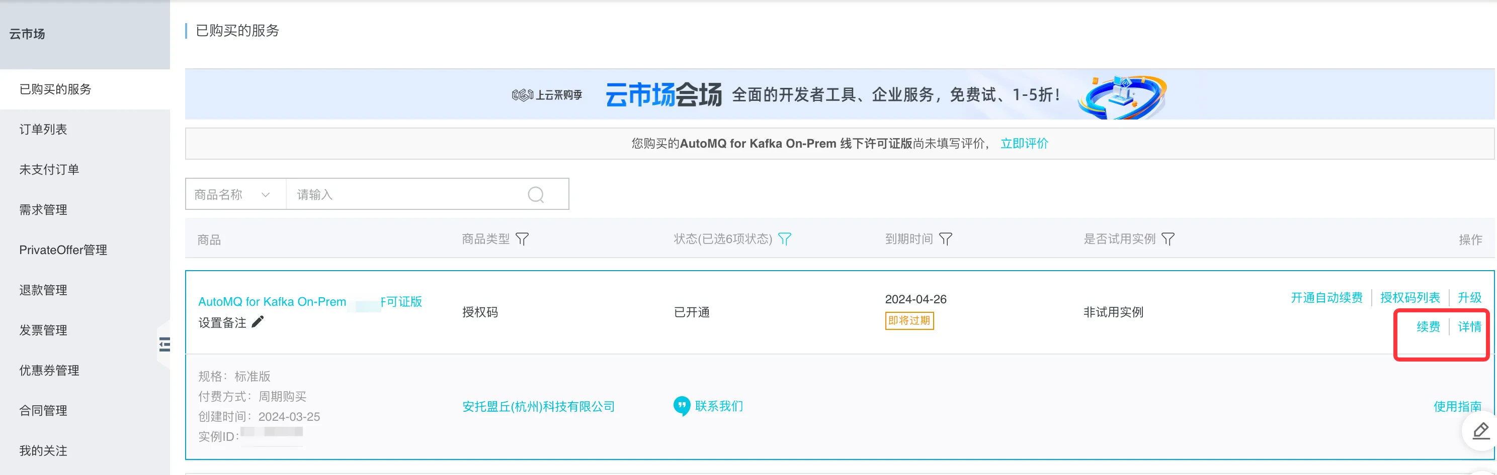 步骤二:云市场新购订阅许可证